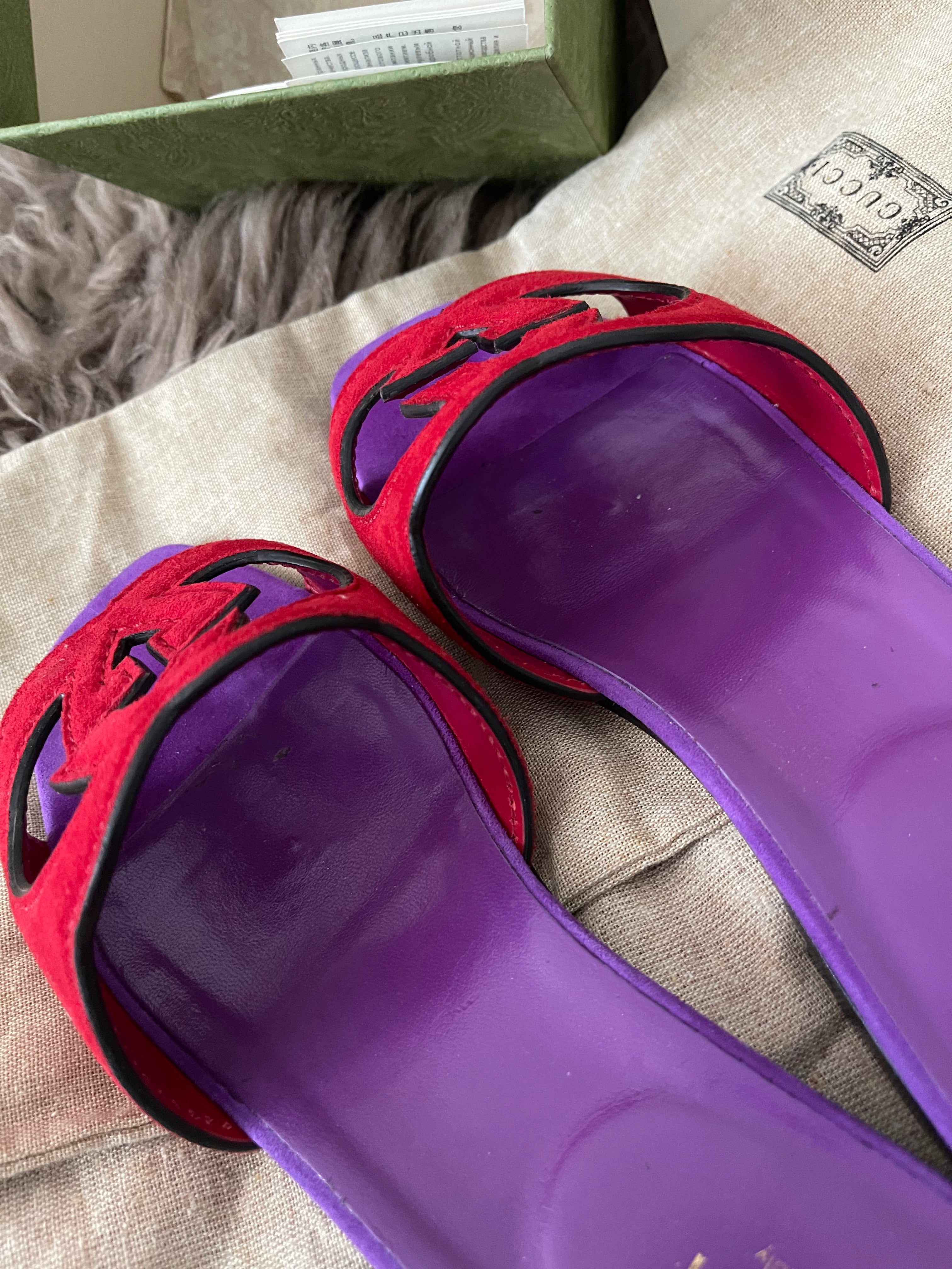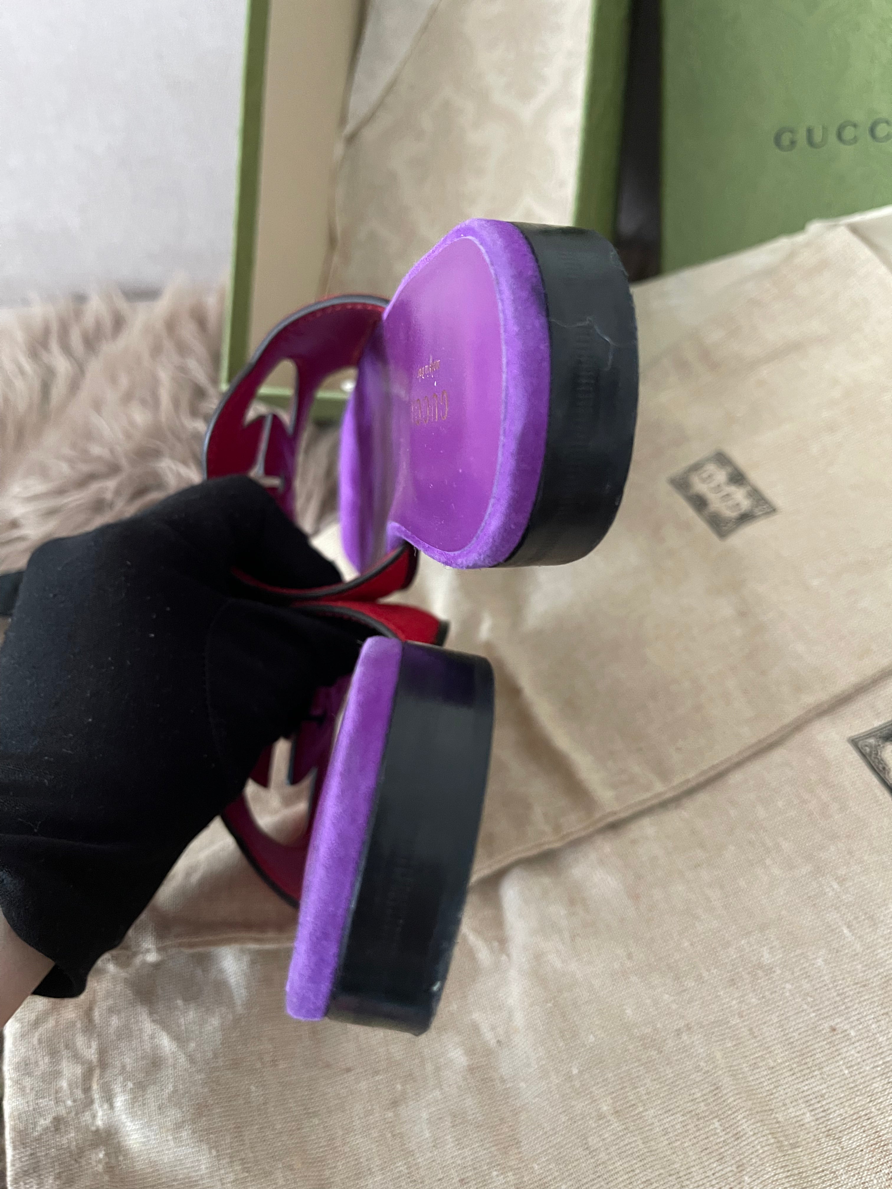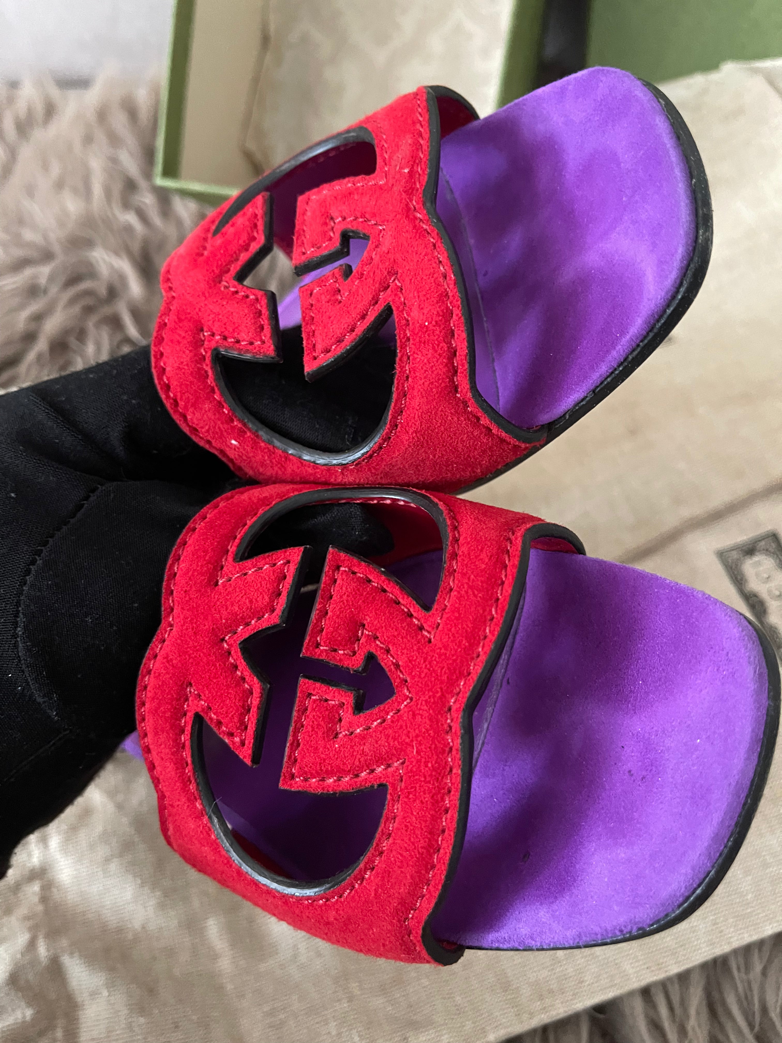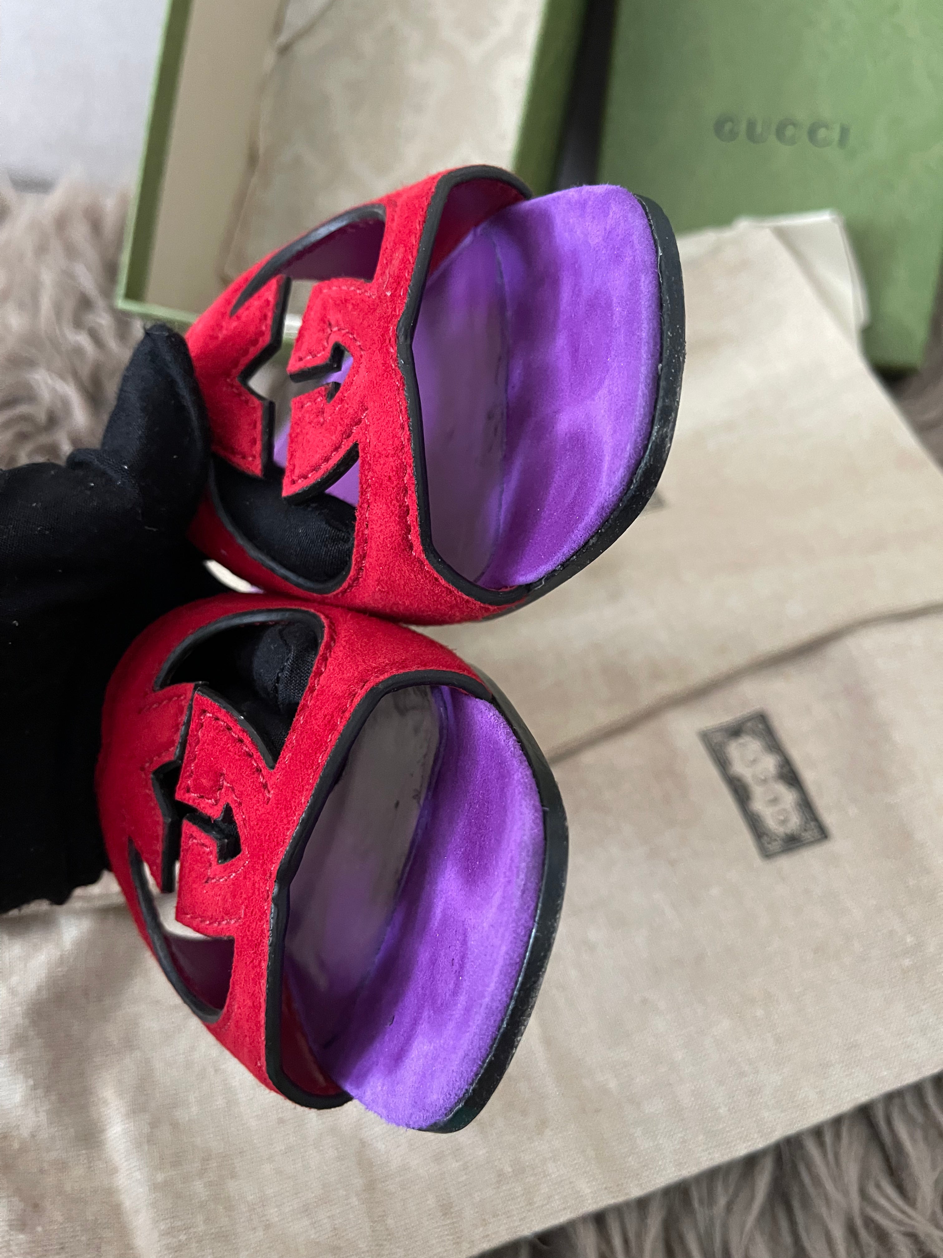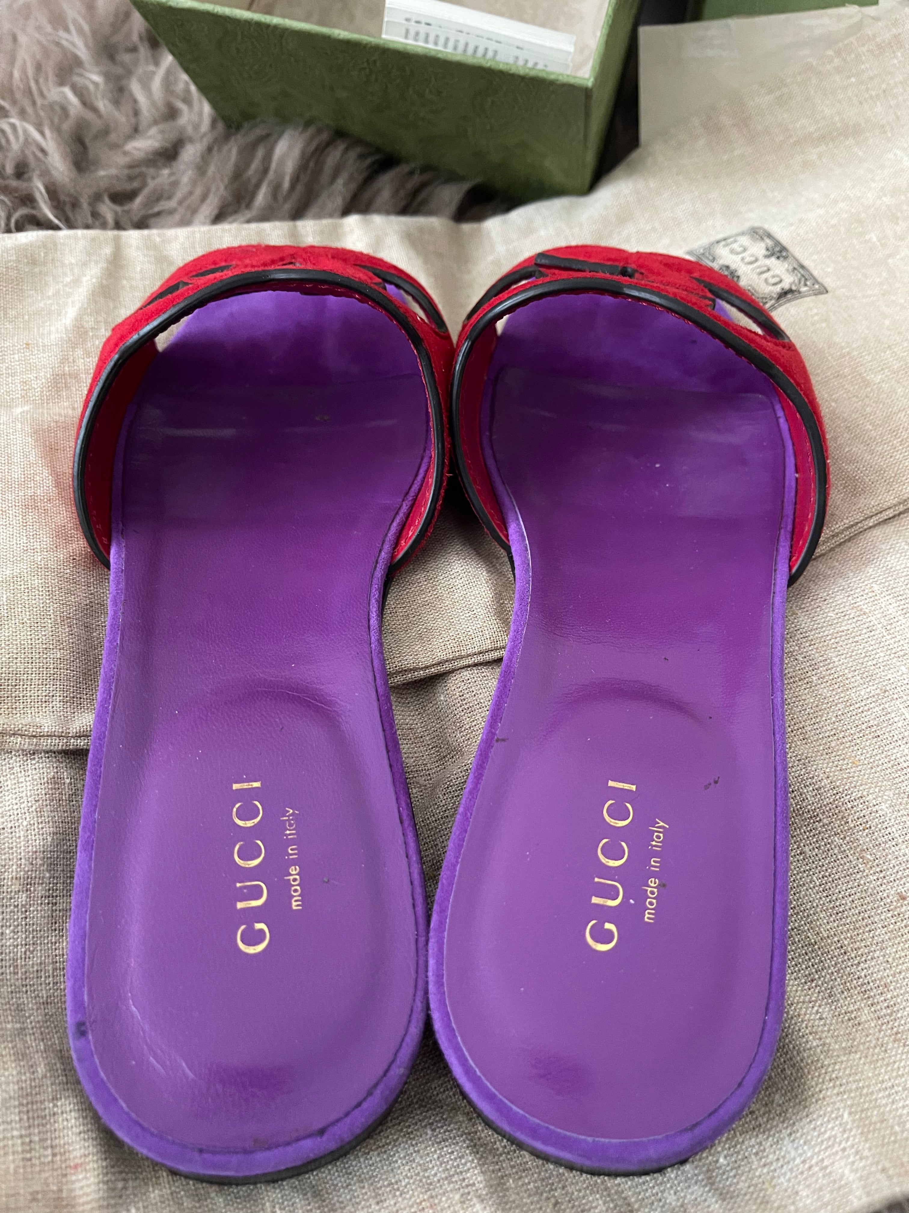 Preloved Authentic Gucci Women's Red Suede Cut-out Interlocking G Sandals SZ 36