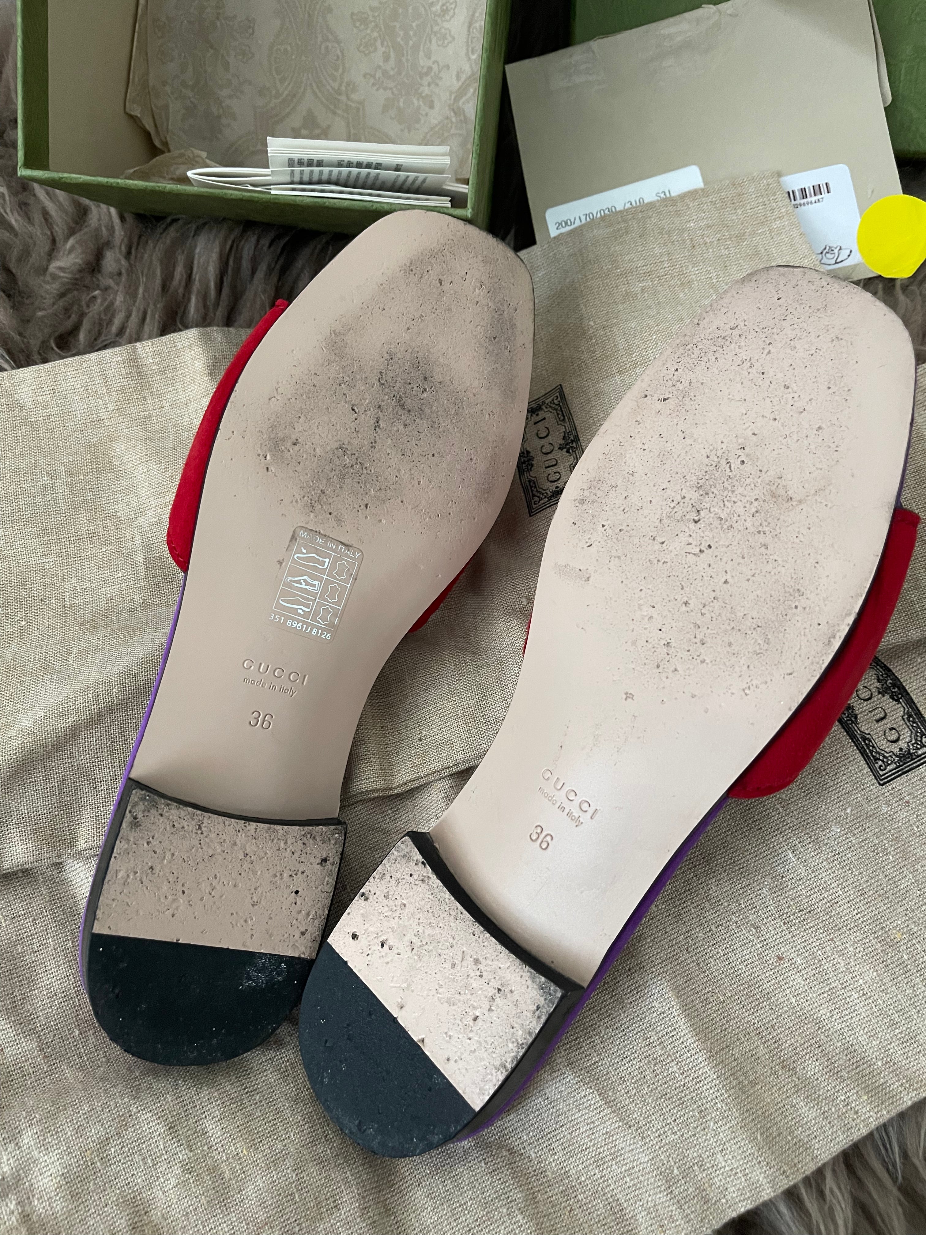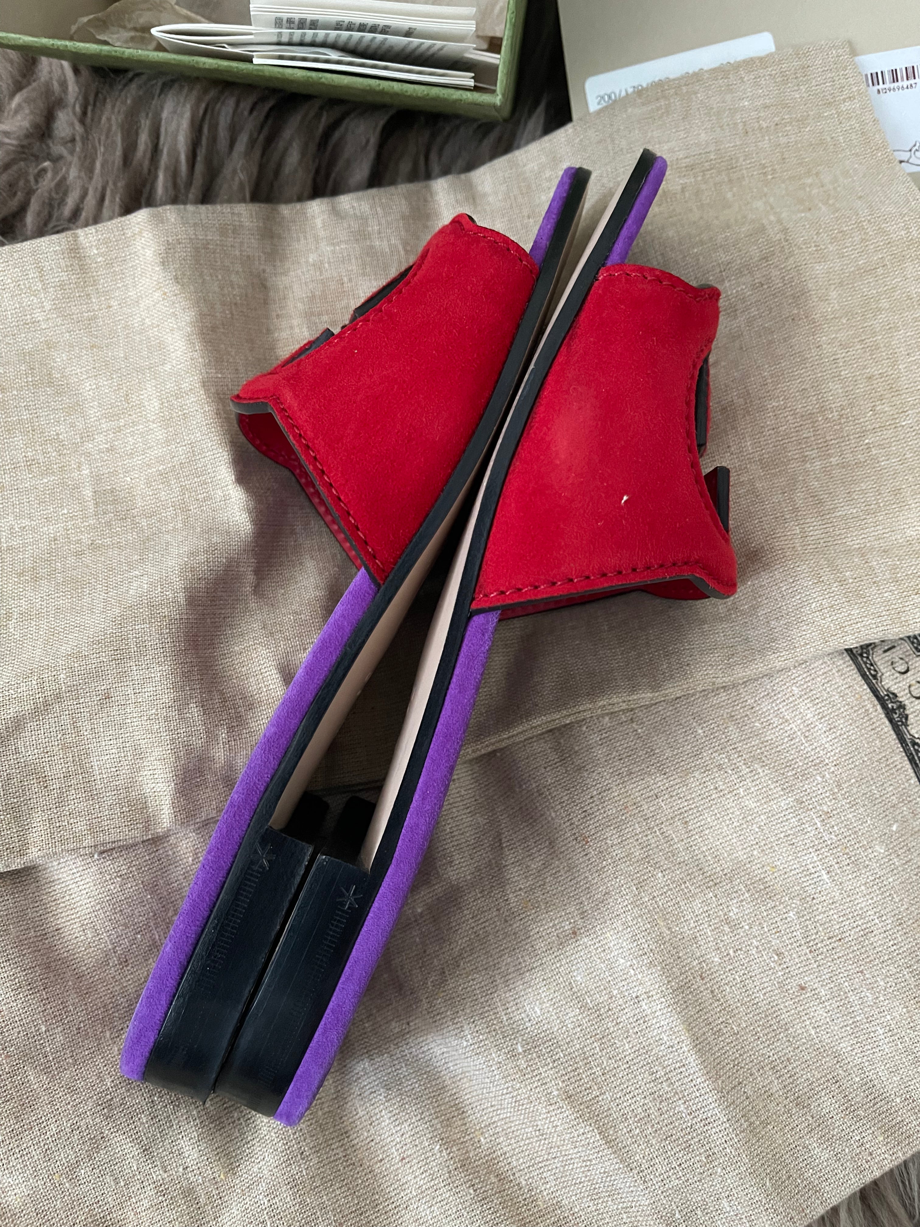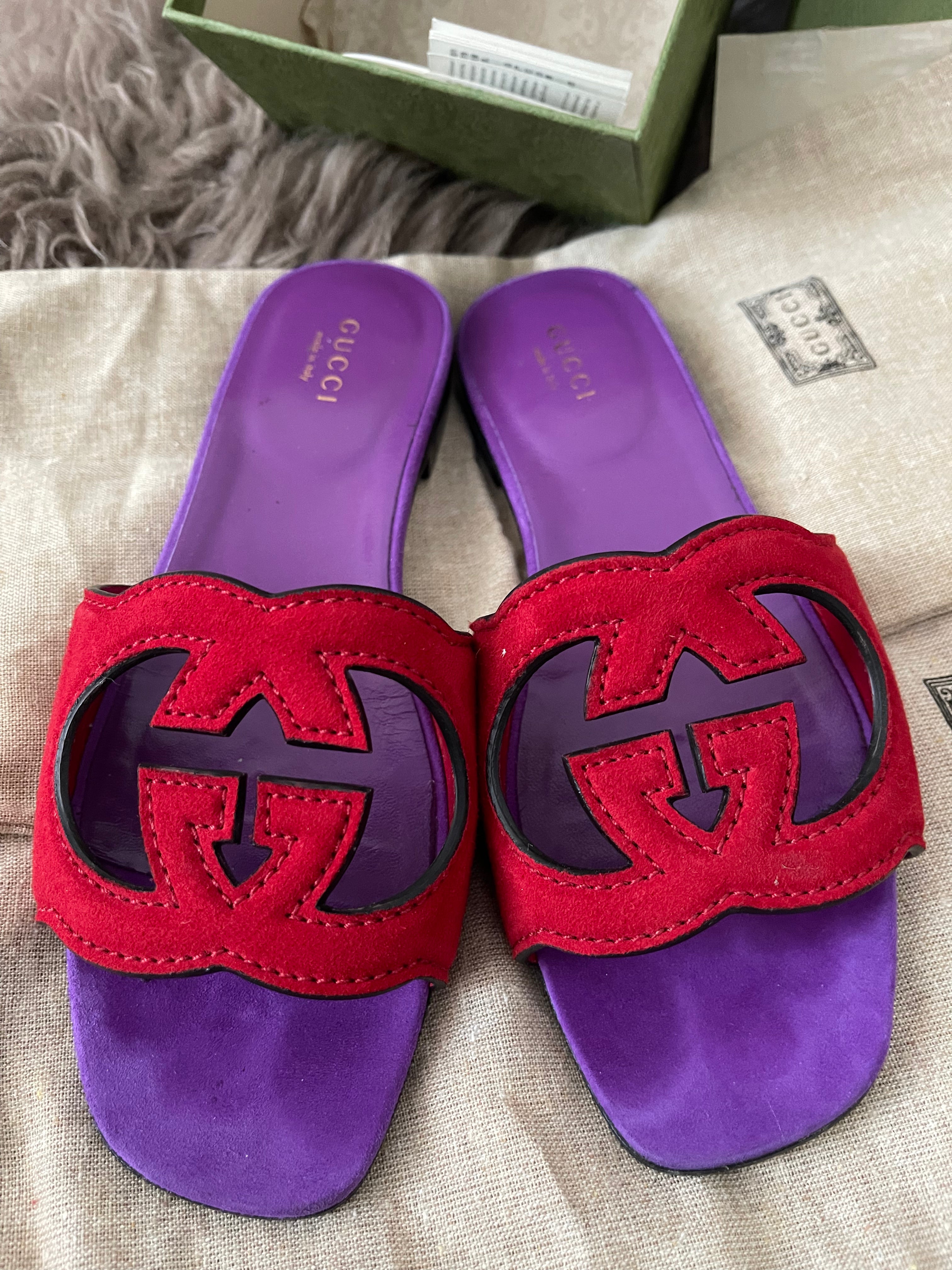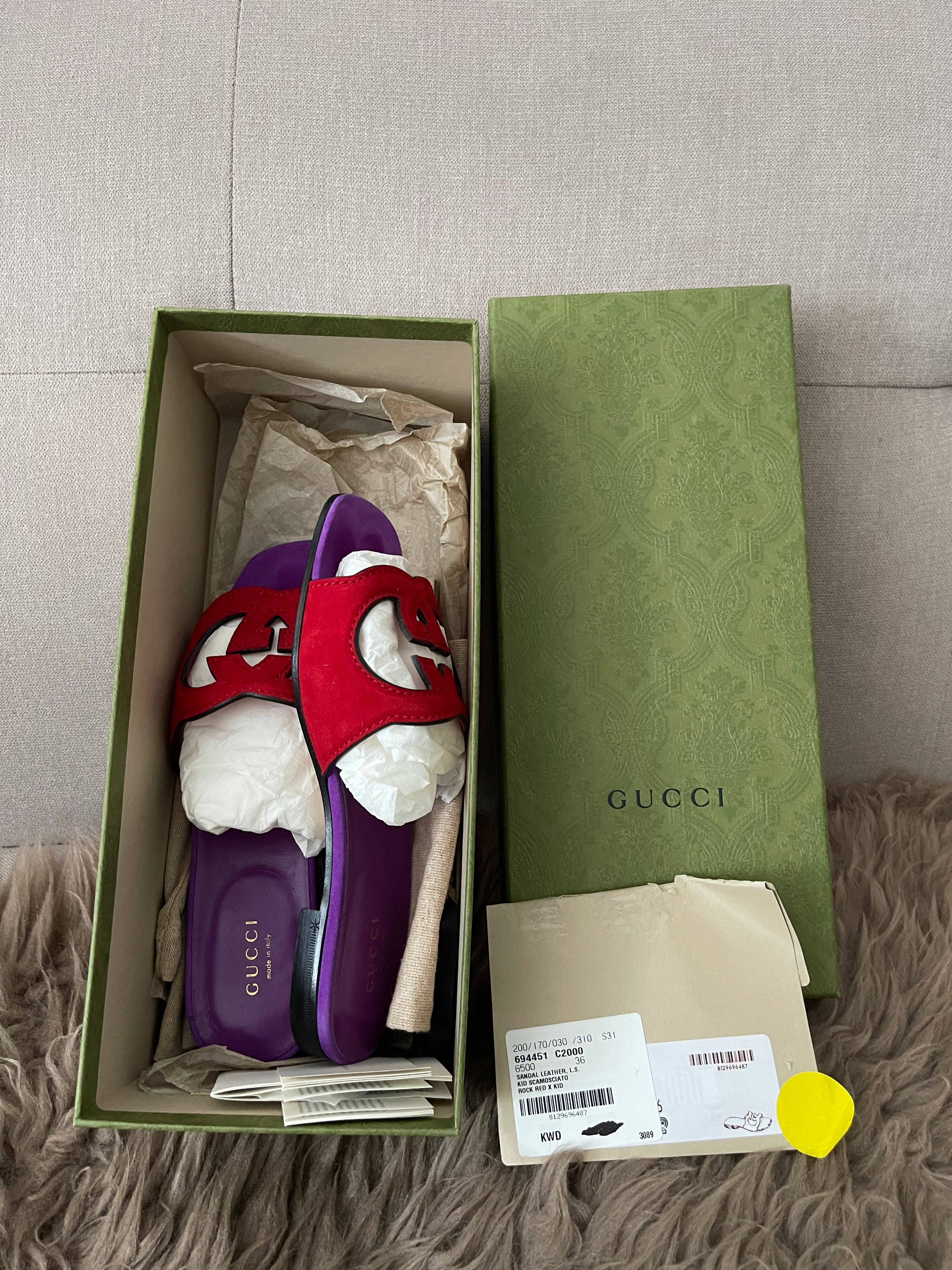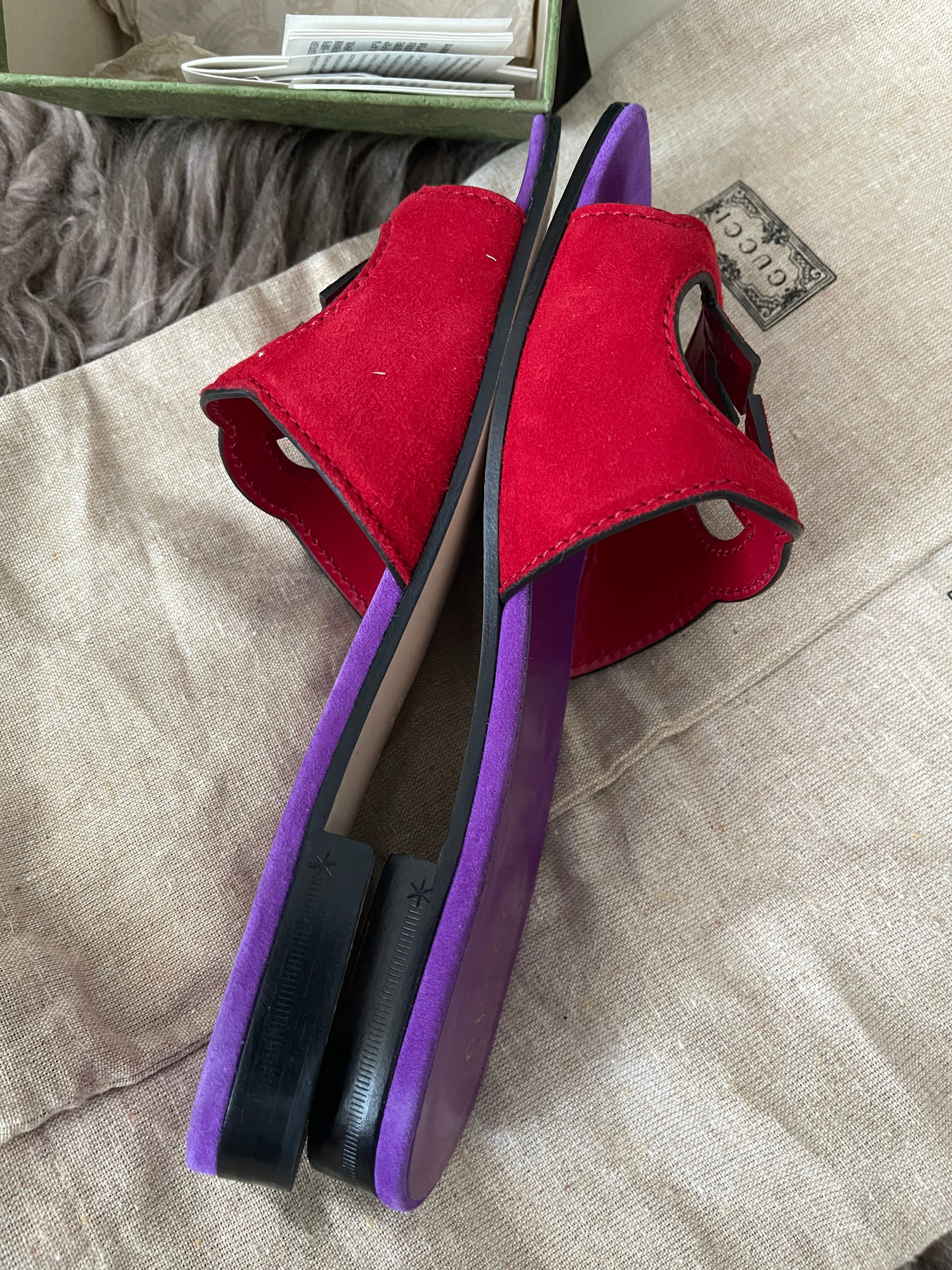 Preloved Authentic Gucci Women's Red Suede Cut-out Interlocking G Sandals SZ 36
