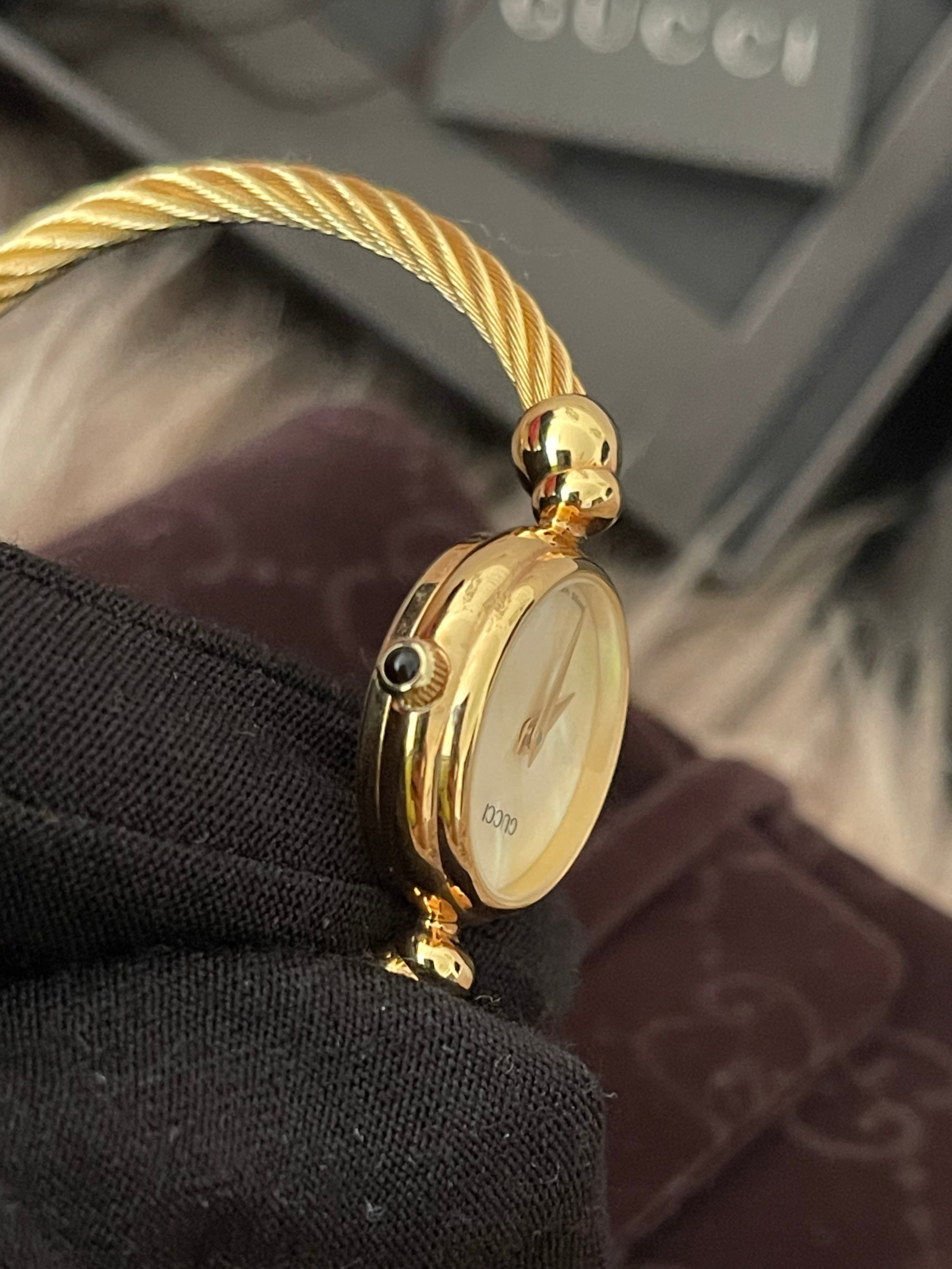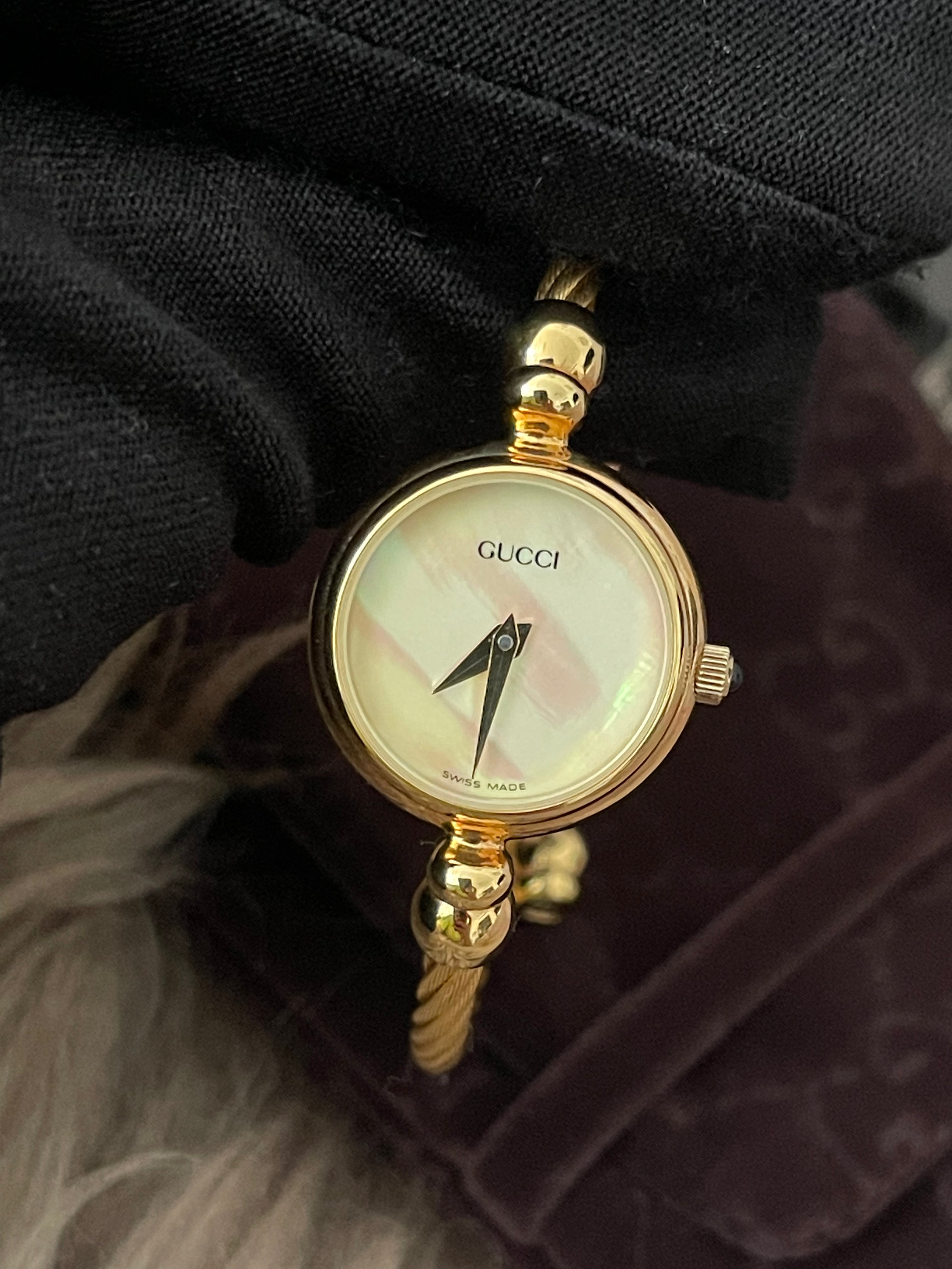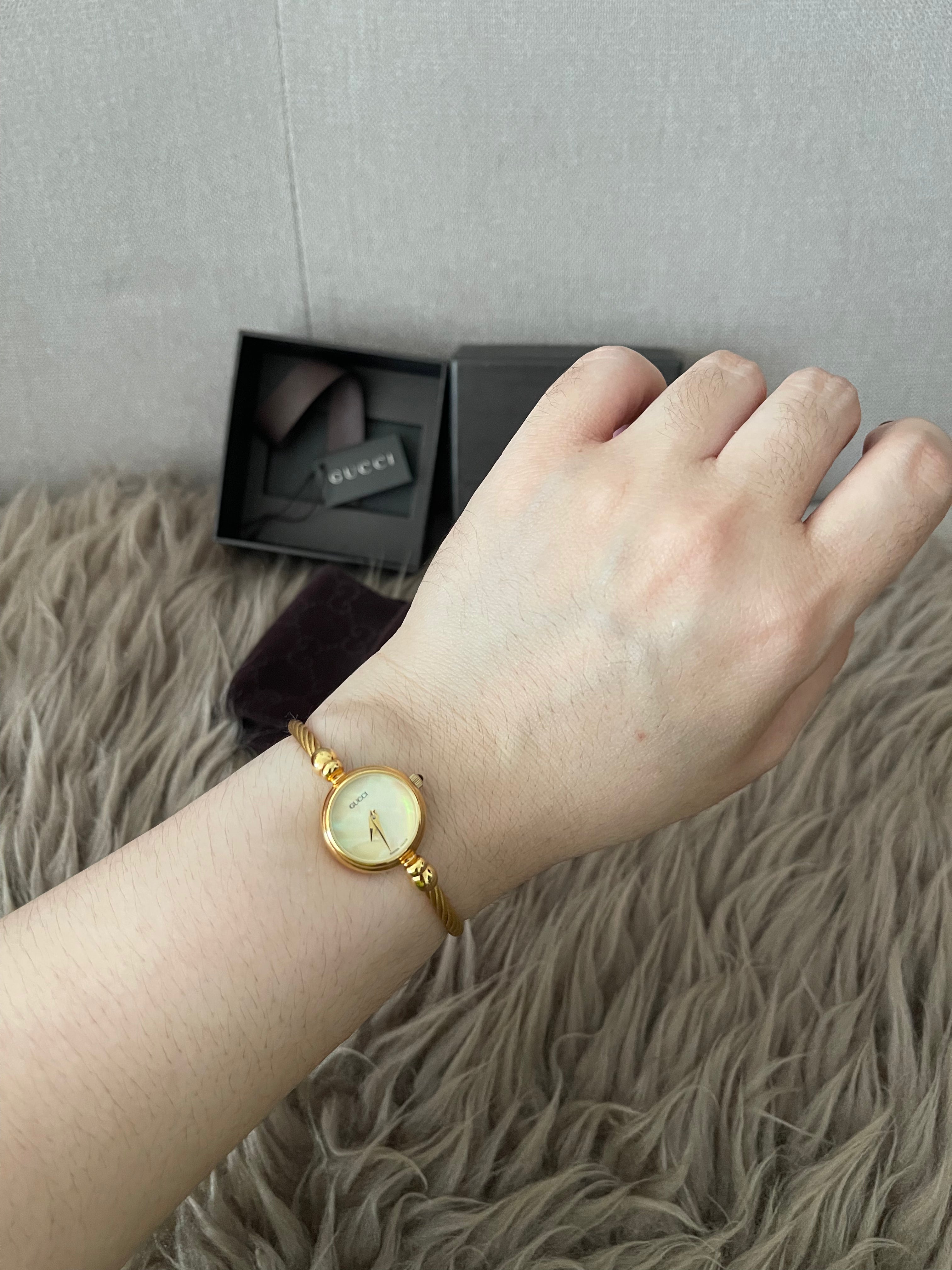 Preloved Authentic Gucci Ladies Bangle Gold Tone MOP Dial 15.5cm