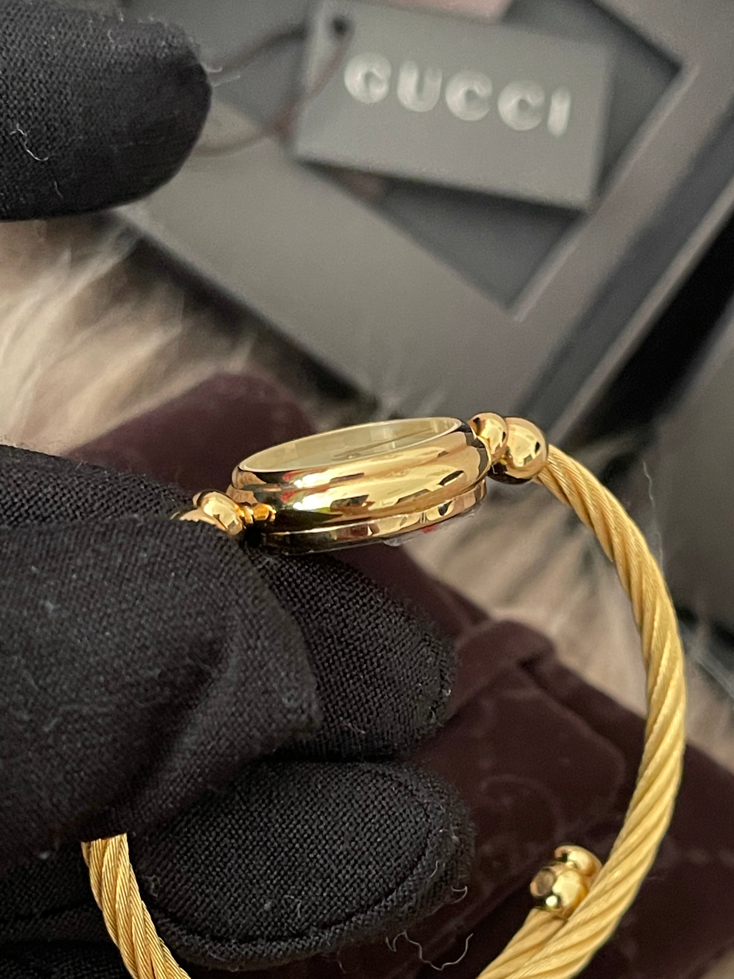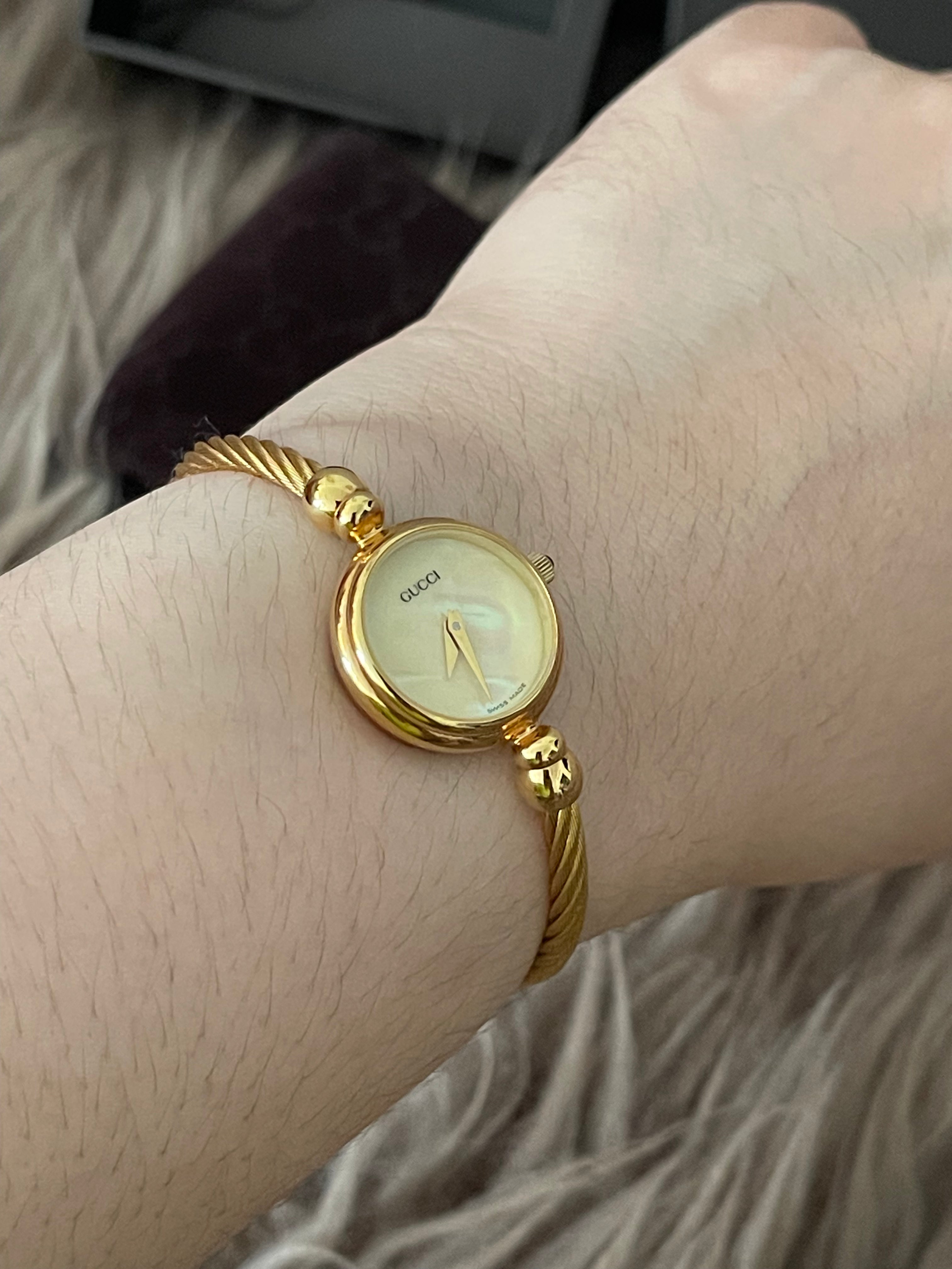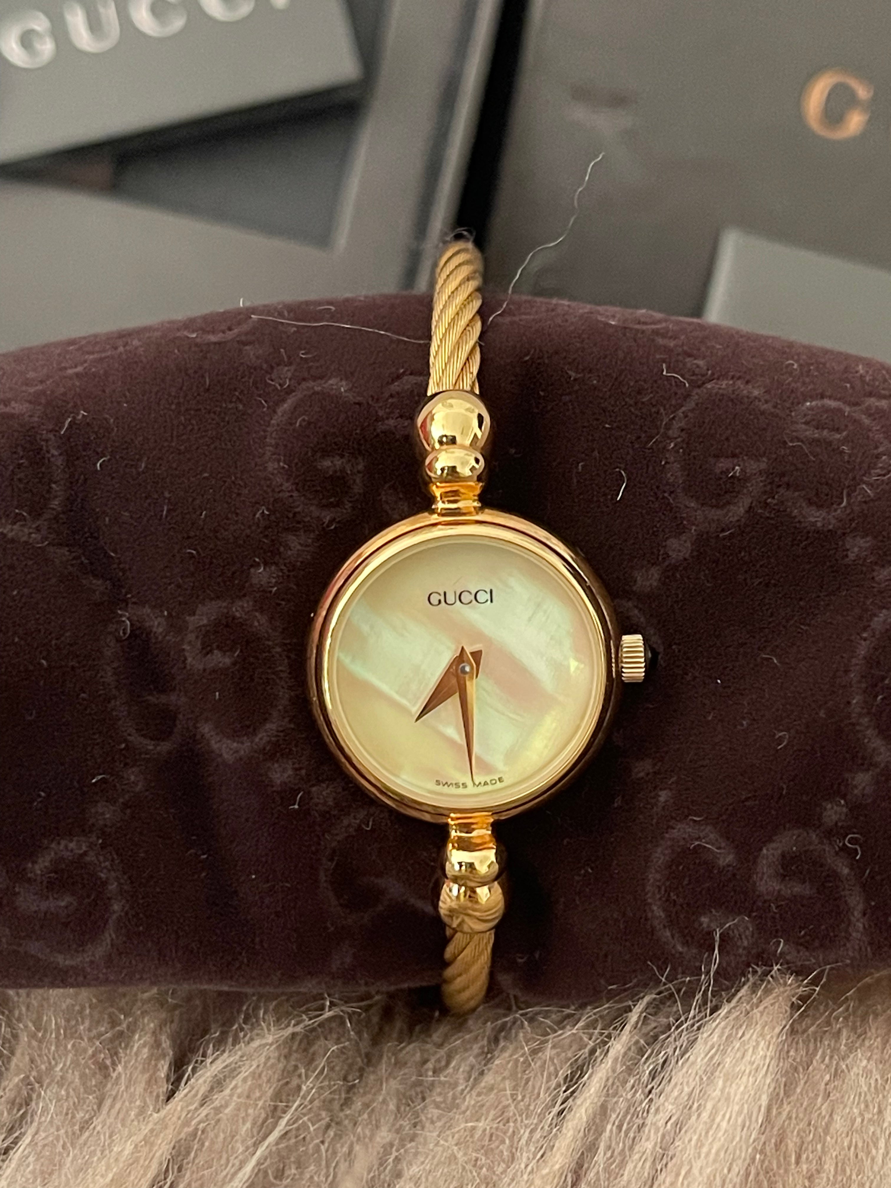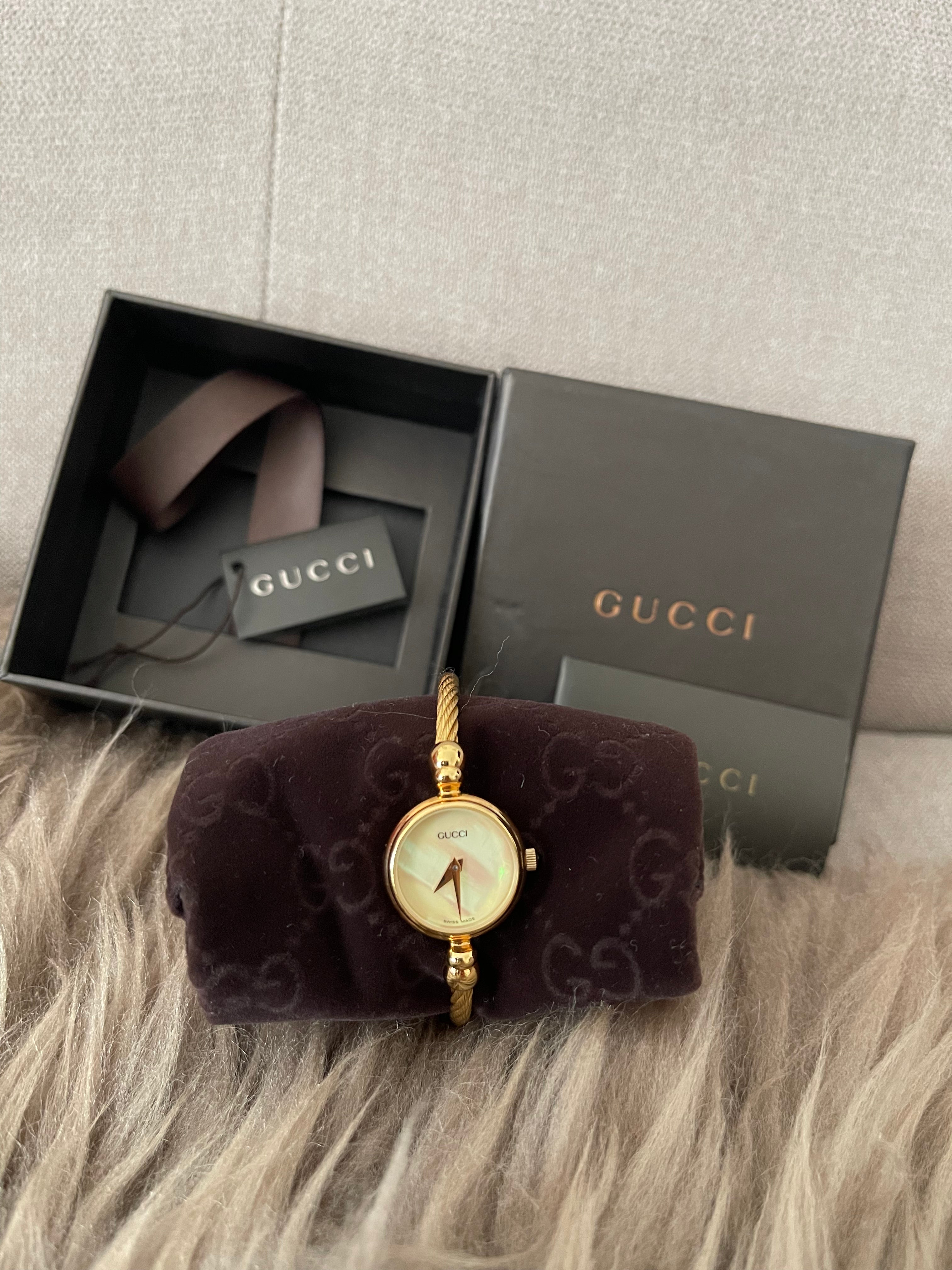 Preloved Authentic Gucci Ladies Bangle Gold Tone MOP Dial 15.5cm
