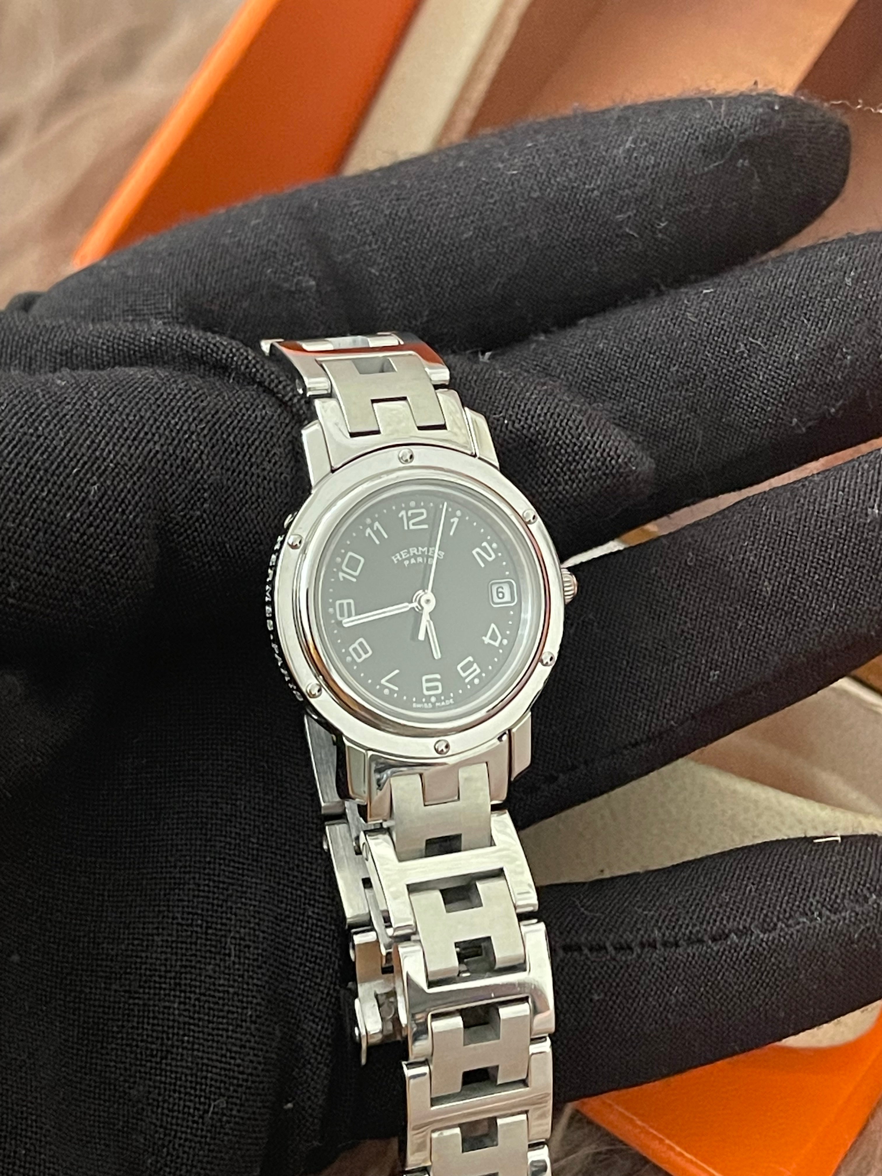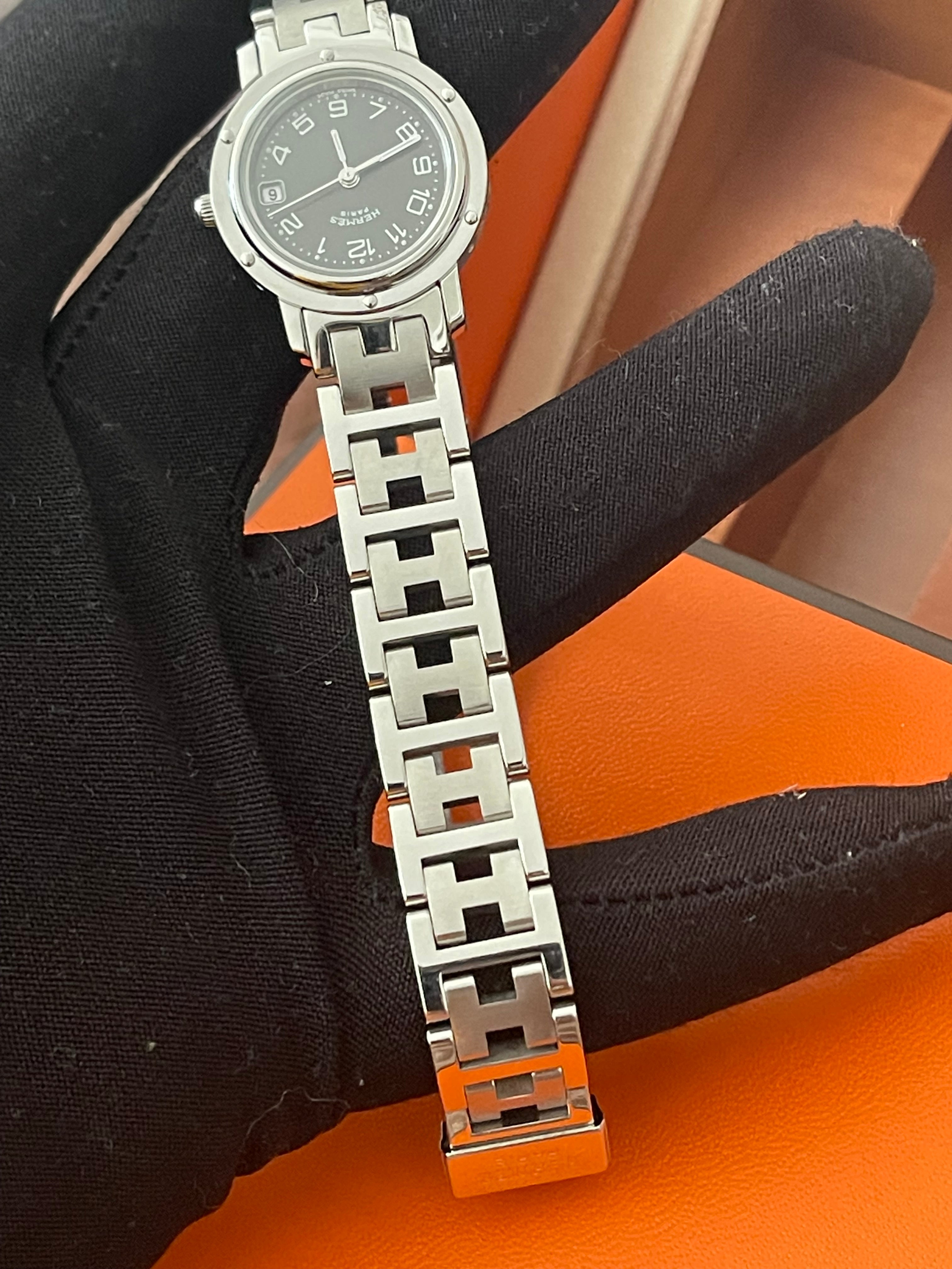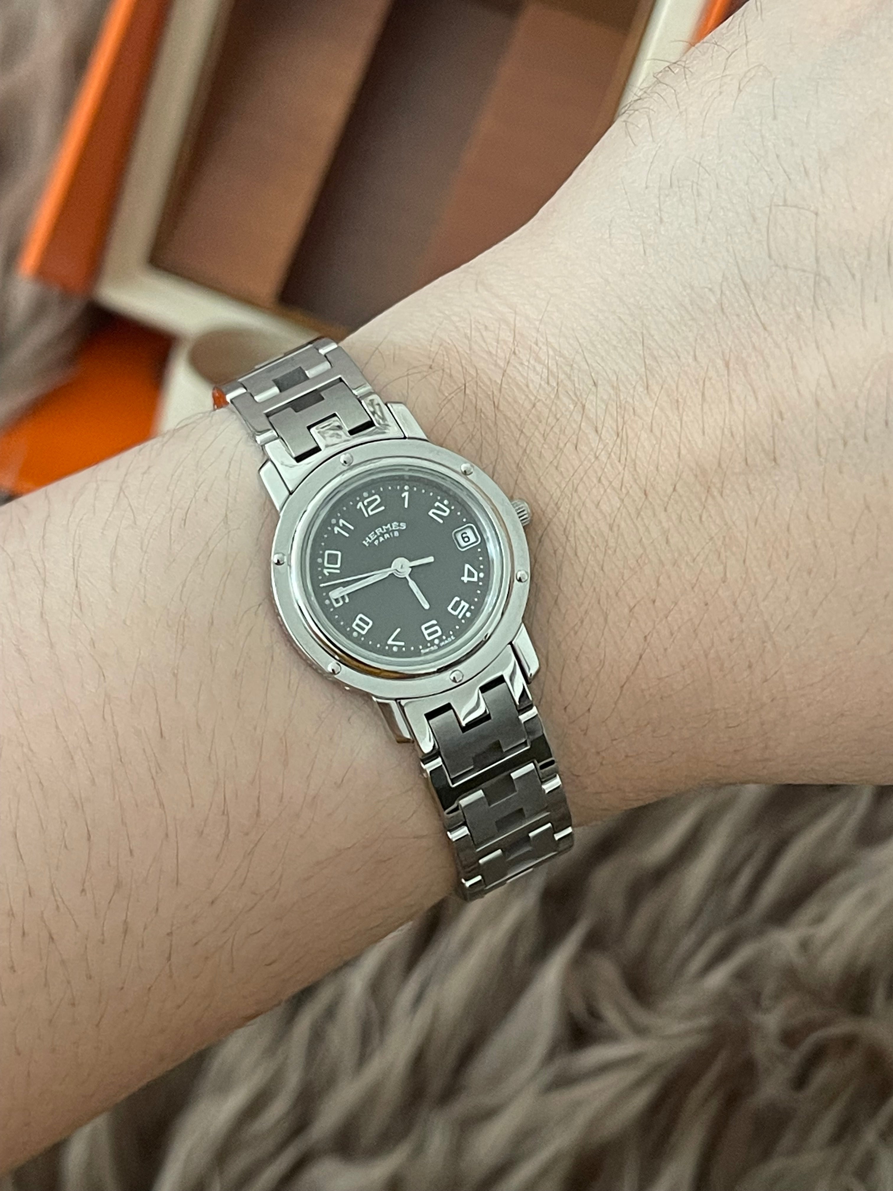 PRELOVED AUTHENTIC HERMES STAINLESS STEEL CLIPPER WATCH 24MM/16.5CM