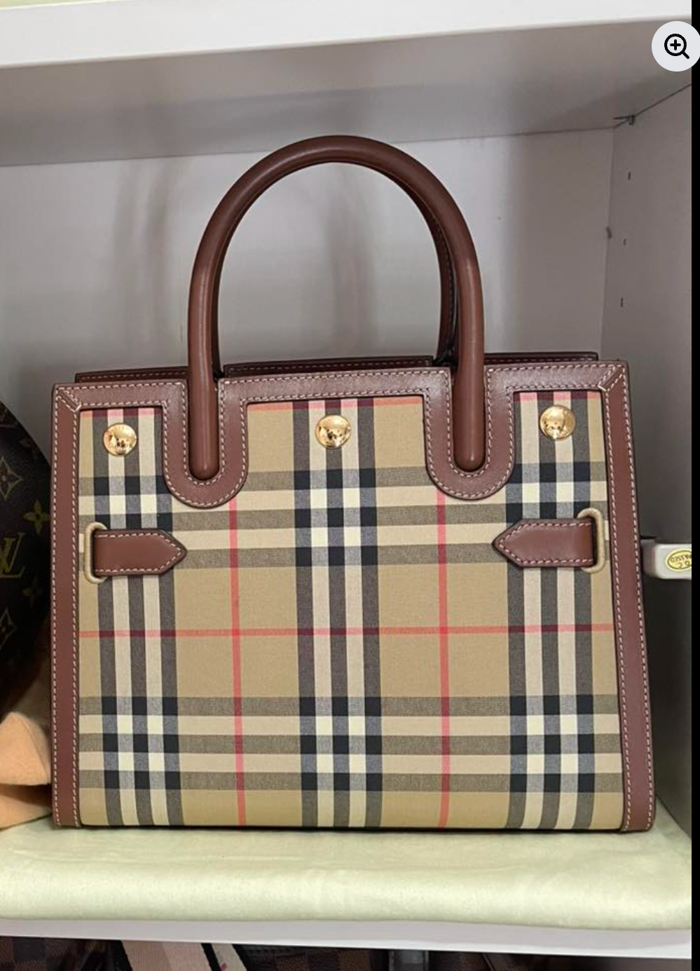 Preloved Authentic Burberry Mini Two-Handle Title Bag in Vintage Check & Leather
